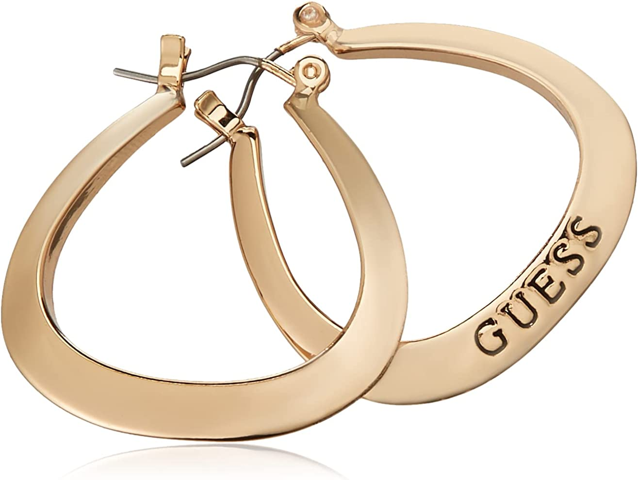 Creating blue ribbon style has never been easier with these chic logo triangles from GUESS. TRIANGULAR LOOP EDGE AND GUESS" ENGRAVING. AVAILABLE IN SILVER OR GOLD METAL. CLOSES. IMPORTS. DIMENSIONS: WIDTH: 1⁄4" HEIGHT: 1⁄4" DIAMETER: 3⁄4" DROP: 1" WEIGHT: 0.16 oz