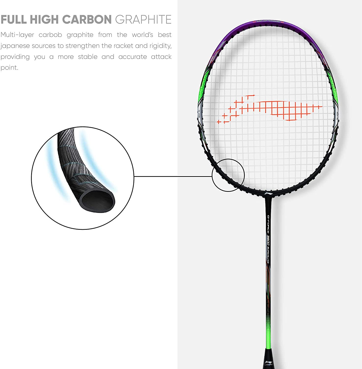 • Li-Ning g force series is made with strong material know as ultra carbon fiber. This material gives excellent rigidity to sustain impact load at very low weight