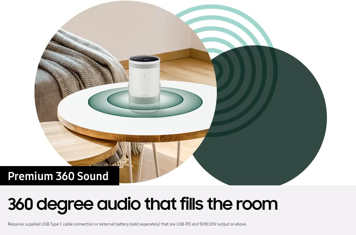 SAMSUNG 30”- 100” The Freestyle FHD HDR Smart Portable Projector for Indoor and Outdoor Home Theater Big Screen Experience with Premium 360 Sound with Alexa Built-In (SP-LSP3BLAXZA, 2022 Model)
